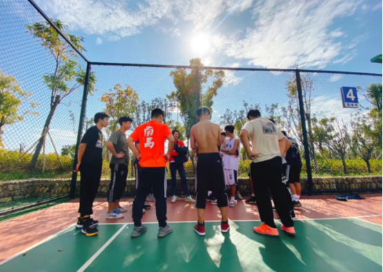 篮球场上,贺老师作为校篮球协会会长和校男篮的教练,节假日和课余时间对队员们进行动作指正和篮球战略教授。对于身体素质的提高,贺老师也有一套她自己的训练方法,使得男篮队员的篮球技术都得到了较大的提升。
