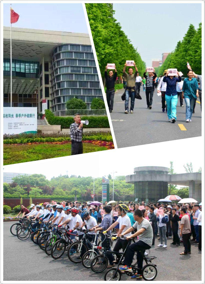 4月29日,由学校工会主办,休闲协会、棋牌协会、毅行协会、骑行协会承办,摄影协会协办的“春季健身”活动在“美丽杭职”善湖边完美开幕。校党委书记安蓉泉、党委副书记赵一文出席了开幕式。安蓉泉宣布“2015春季健身”活动开幕,全校530多位工会会员参加此次活动。
