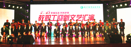 演出伊始,校领导手拿一幅幅对联,登台为全校教职员工送上了新年最真诚的祝福,希望全校师生凝心聚力、振奋精神、团结一致、共同努力,把杭职院建得更好、做得更强、走得更远。