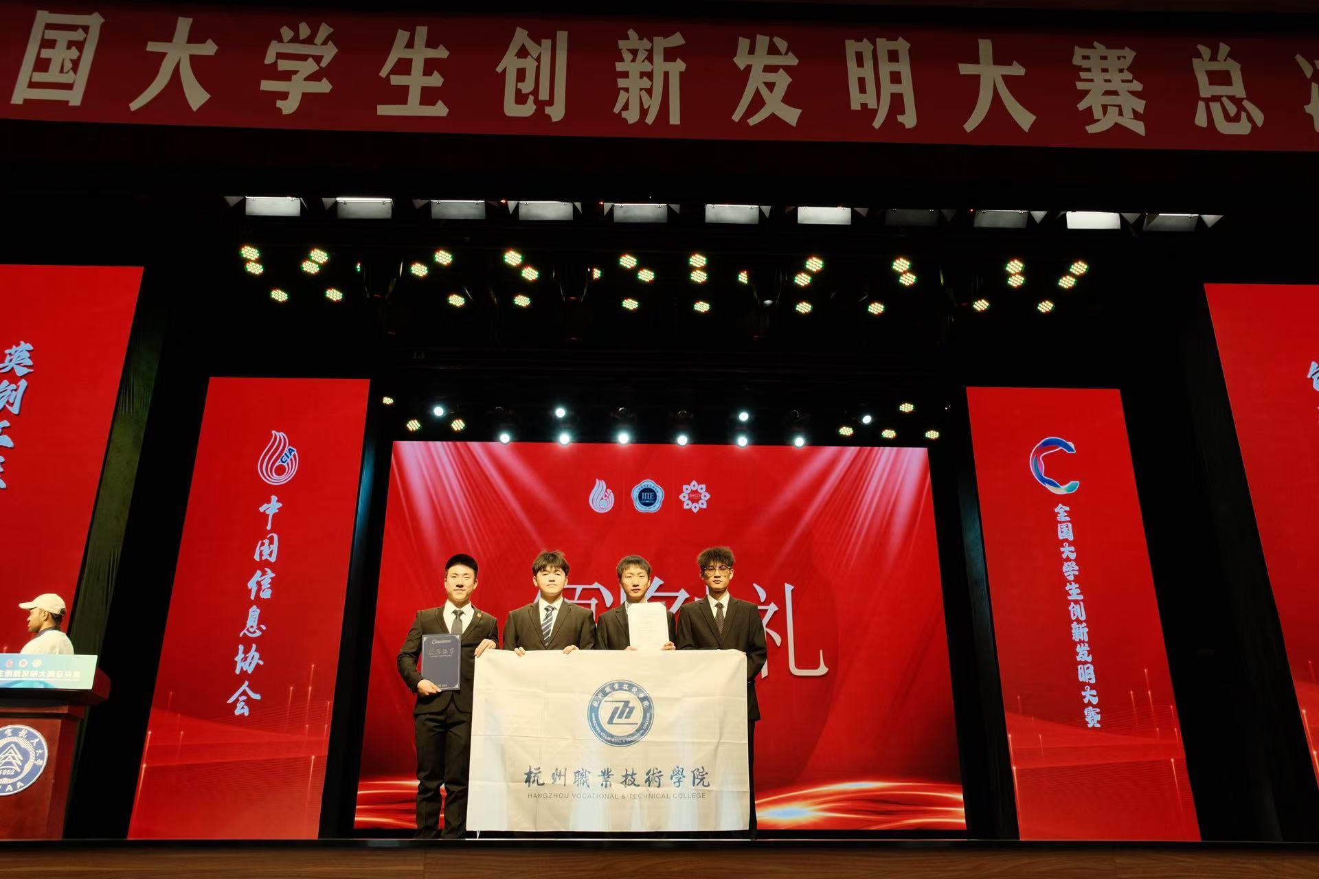 由吉利汽车学院李兰友、张洪利老师指导,吴兴航、周江涵、刘媛媛、章涵锐、杨乐组成的融善青橙学生团队带来的作品“‘融善号’智能移动充电车”作为浙江省唯一闯入决赛的高校代表,面对众多985、211 高校的强劲对手,凭借其智能化、自动化、高效能的创新设计,在总决赛中脱颖而出,荣获全国一等奖,并成为创新发明赛道发明方向唯一获得一等奖的职业院校,成为全场焦点,充分展现了团队的非凡实力与创新精神。