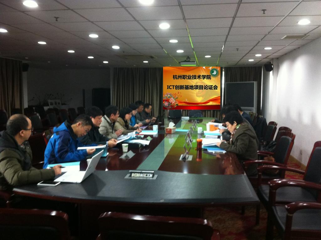 12月12日上午,我校召开杭州职业技术学院中兴ICT创新基地项目论证会。会议由副校长许淑燕主持。浙江省教育技术中心副主任郑飞、市教育局高师处处长孙青峰、市财政局科教文处宣艳芳、市中心企业服务中心郑振华副科长、中国计量学院软件所陆慧娟所长等5位专家组成论证会评审专家,我校教务处、信息中心和信息工程学院负责人,以及中兴通讯公司项目负责人参加了本次论证会。