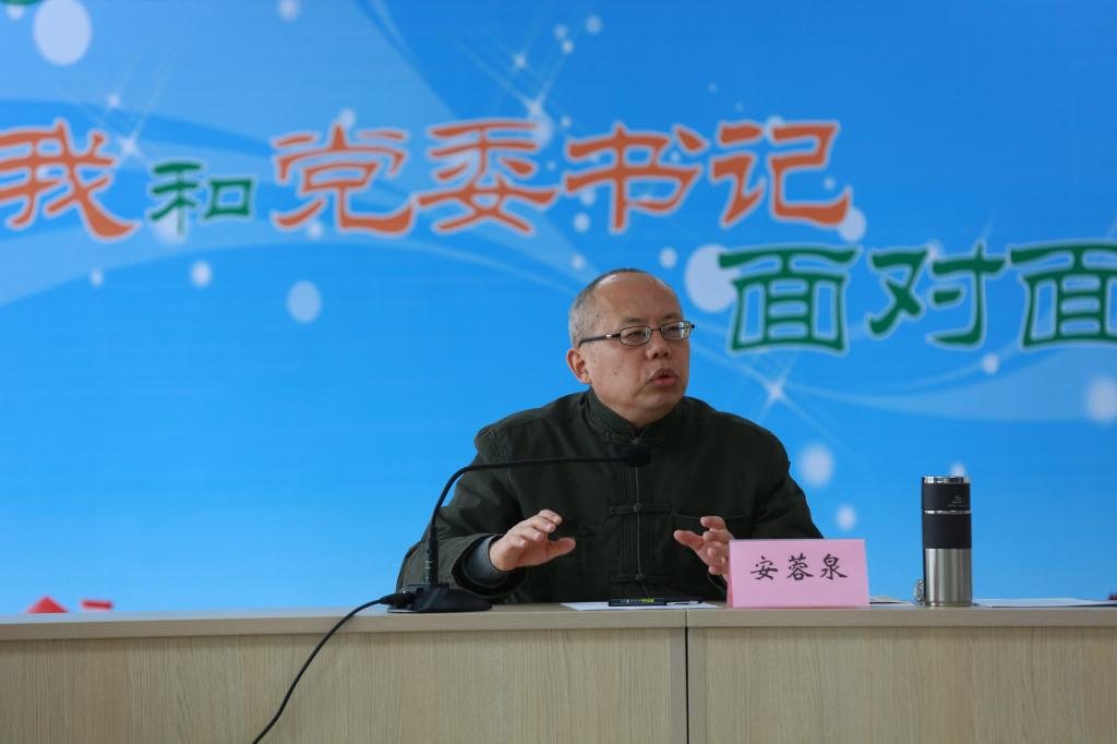 12月10日下午,学生活动中心215会议室举行了“我和党委书记对话”活动。校党委书记安蓉泉,宣传部、学工部、人文社科部相关负责人及六十多位学生一同参加了此次活动。