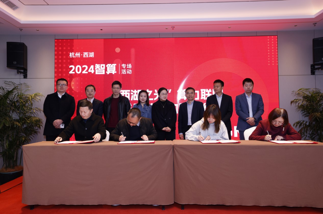 12月20日, 在“西湖之光”算力联盟成立一周年之际,2024年智算专场活动暨“西湖之光”算力联盟服务成果发布大会在杭隆重举行。作为签约单位之一,我校信息中心和信息工程学院代表学校参会,来自政府、高校、企业界的众多代表一道见证。