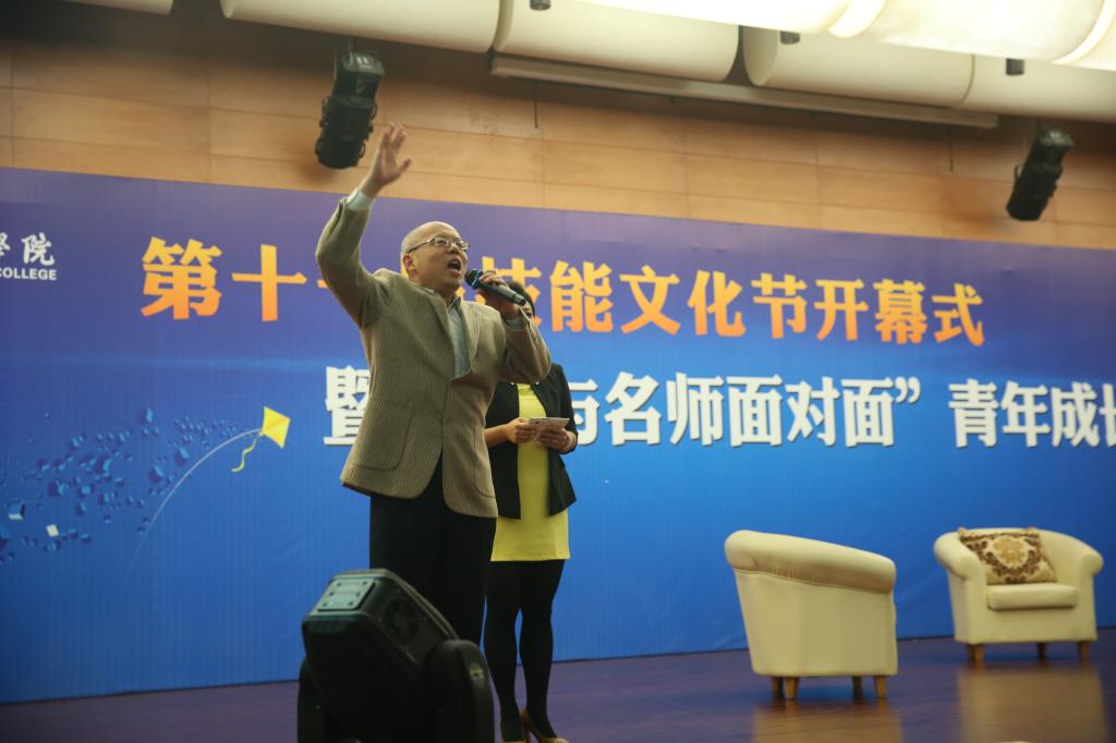 10月29日下午,我校第十一届技能文化节开幕式暨“我与名师面对面”青年成长论坛活动在图书馆一楼报告厅隆重举行。校党委书记安蓉泉、副校长张洪宪、副校长许淑燕、党委委员金徐伟、党委委员孙爱国以及第十一届技能文化节组委会成员、办公室成员以及学生近千人到场参加了活动。