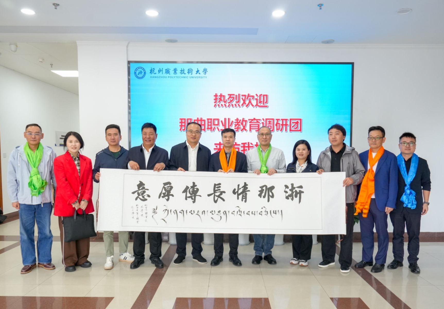 10月21日上午,那曲市教育局党组成员、副局长、浙江省教育厅高等教育处副处长、第十一批援藏干部廖波带领那曲市职业教育调研团来访我校,那曲市职业技术学校校长才嘎、副校长王星歌,那曲市第二职业技术学校副书记、副校长扎西巴登以及那曲市教育局、那曲市文旅局相关处室负责同志陪同。副校长袁俊,办公室、教务处、人事处、继教院等相关部门负责人参与接待。