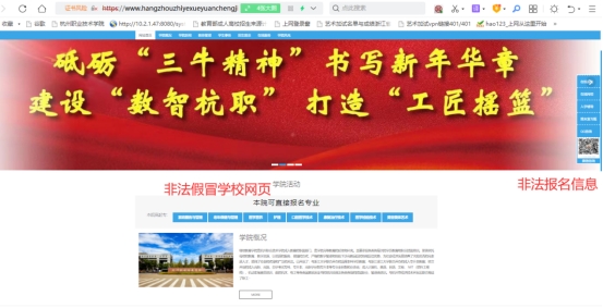 学校已向浙江省网信办举报,欢迎广大考生和家长提供冒充学校虚假宣传的各类线索,打击违法犯罪行为!